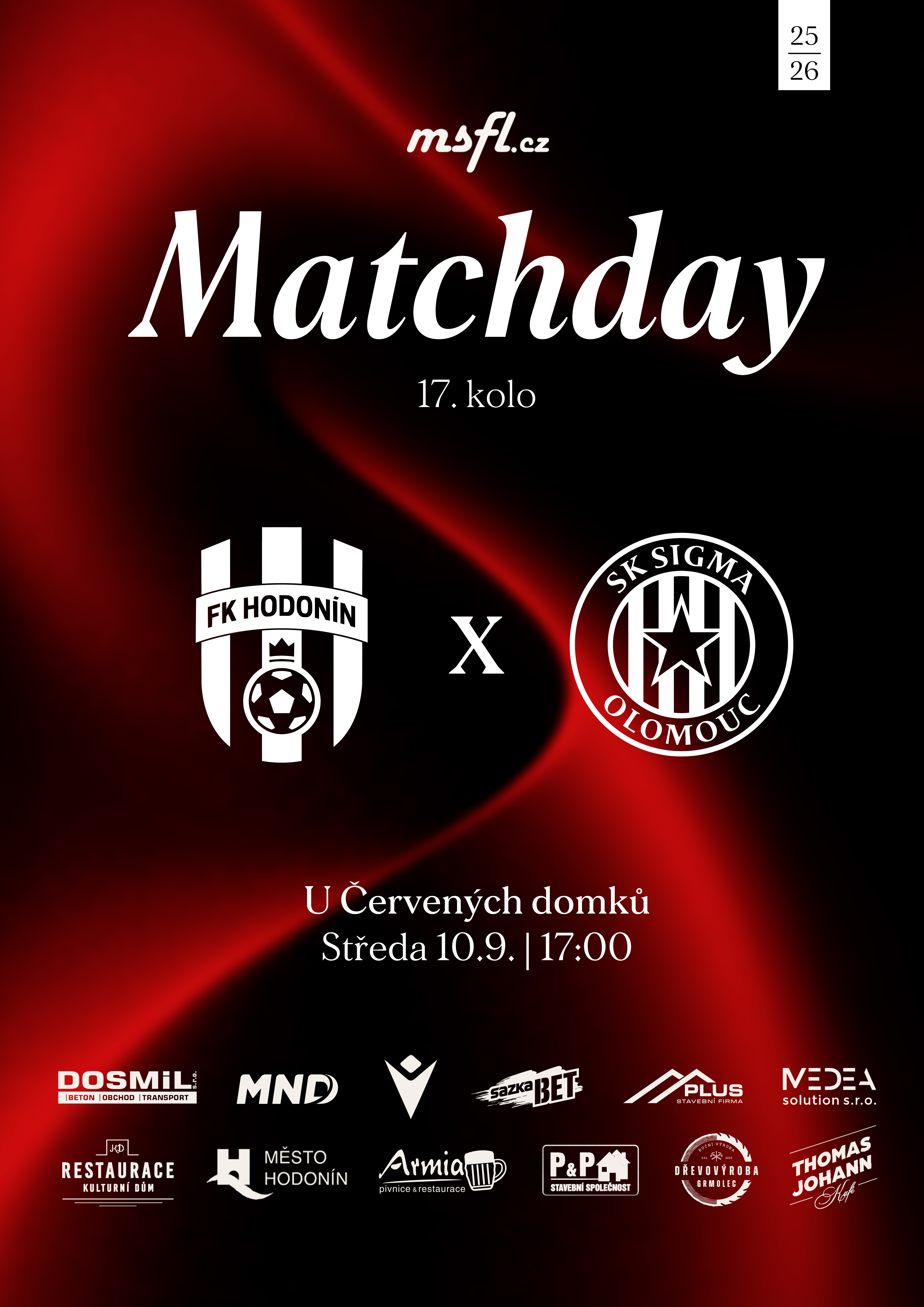 FK Hodonín - muži mistrovské utkání (MSFL) Středa 10. 9. 2025 od 17.00 hod.FK Hodonín - Sigma Olomouc B